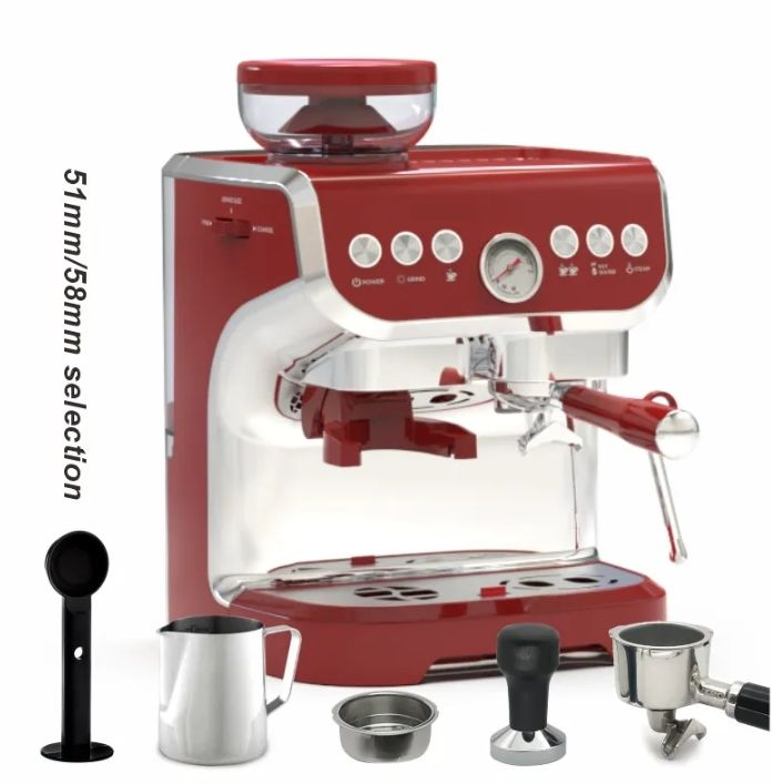 Semi-Automatic Control Professional Commercial Italian Espresso Machine - Triple Ceramic Shell - Adjustable Grinder