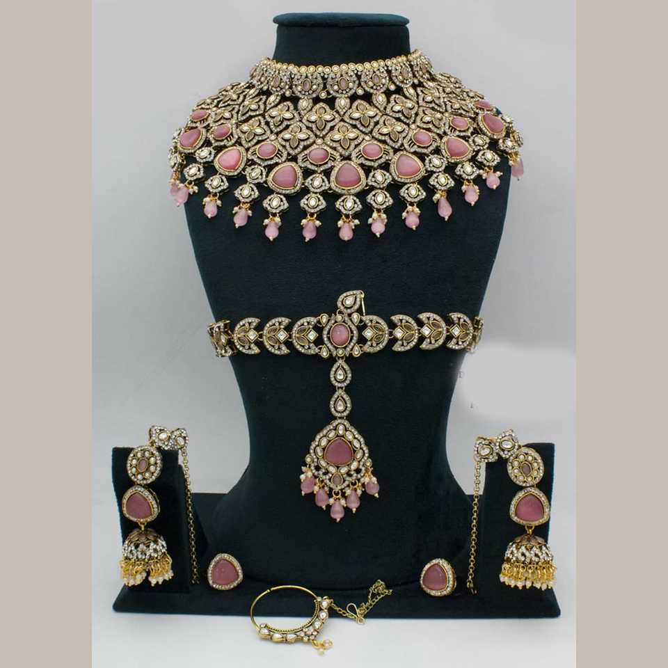 Semi-Bridal Fine Jewelry Set Gold Plated with Austrian and Potassium Stones Beads