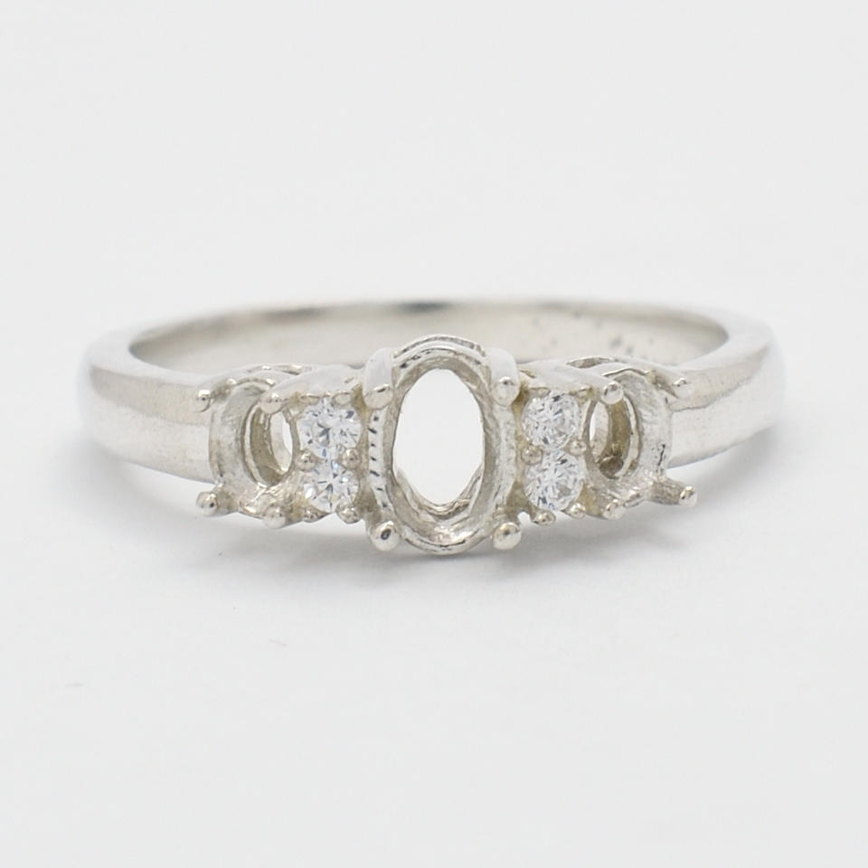 Semi Mount 3 Stone 925 Solid Silver Engagement Rings Ready Set with CZ Cubic Zirconia for Making Customized Jewelry Perfect Gift