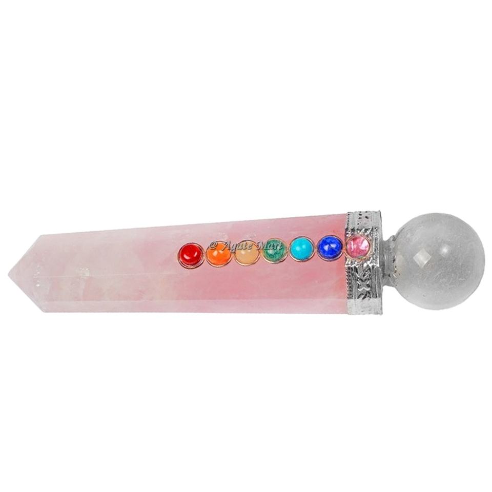 Semi-Precious Stone Crafts Rose Quartz Angel Healing Stick Wand Natural Stone Rose Quartz Crystal Wand for spiritual well-being
