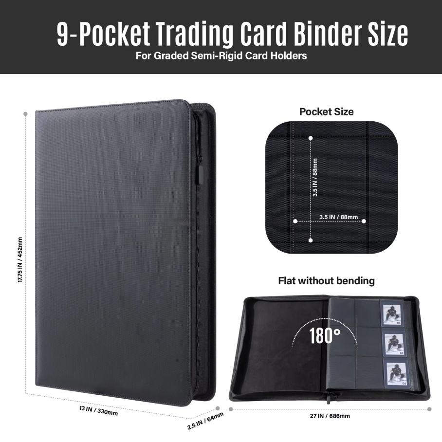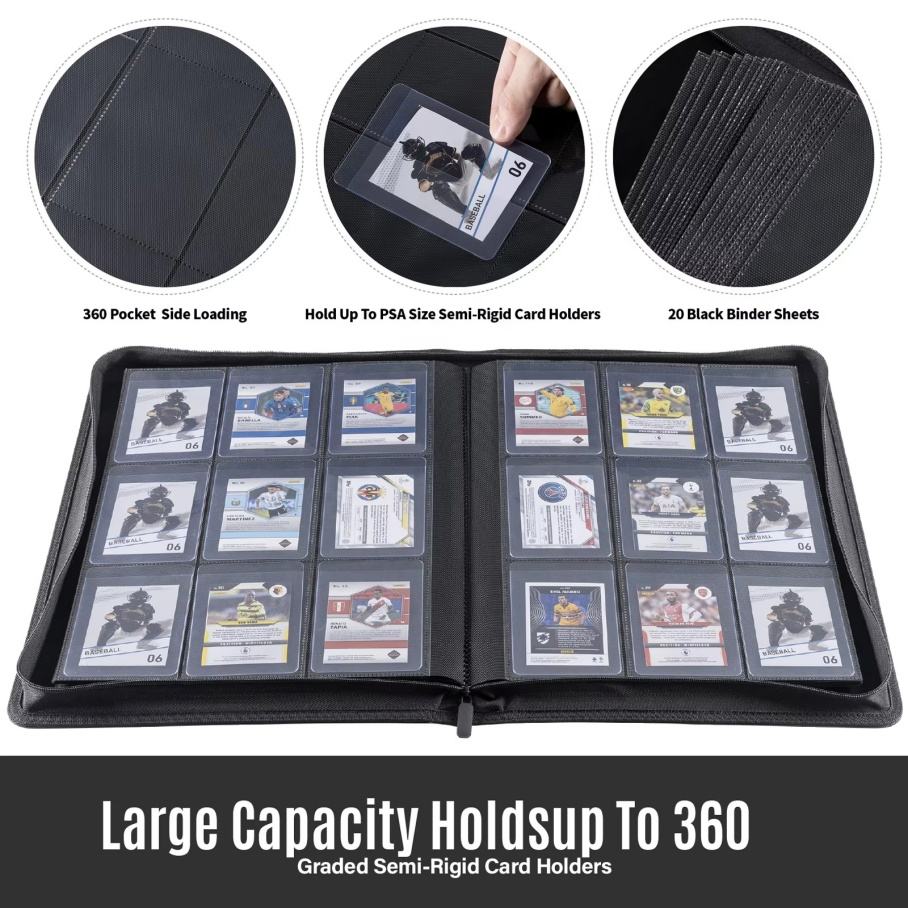 Semi-Rigid Card Saver Collectors Binder Holds 360 Cards 9 Pocket Trading Leather Photo Albums