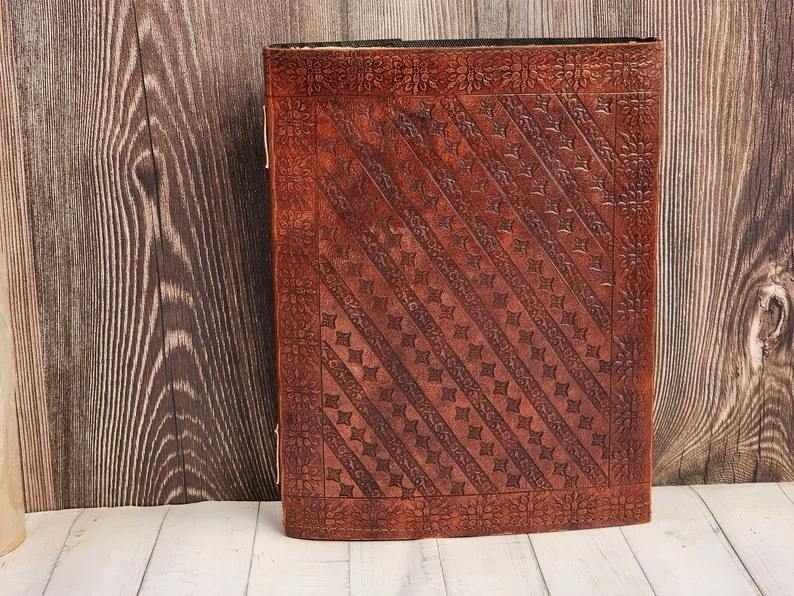 Semi Stone Unlined Journal with Clasp BlackBook of Shdaows Deckle Edge Paper C Lock Notebook Organizer Embossed Leather