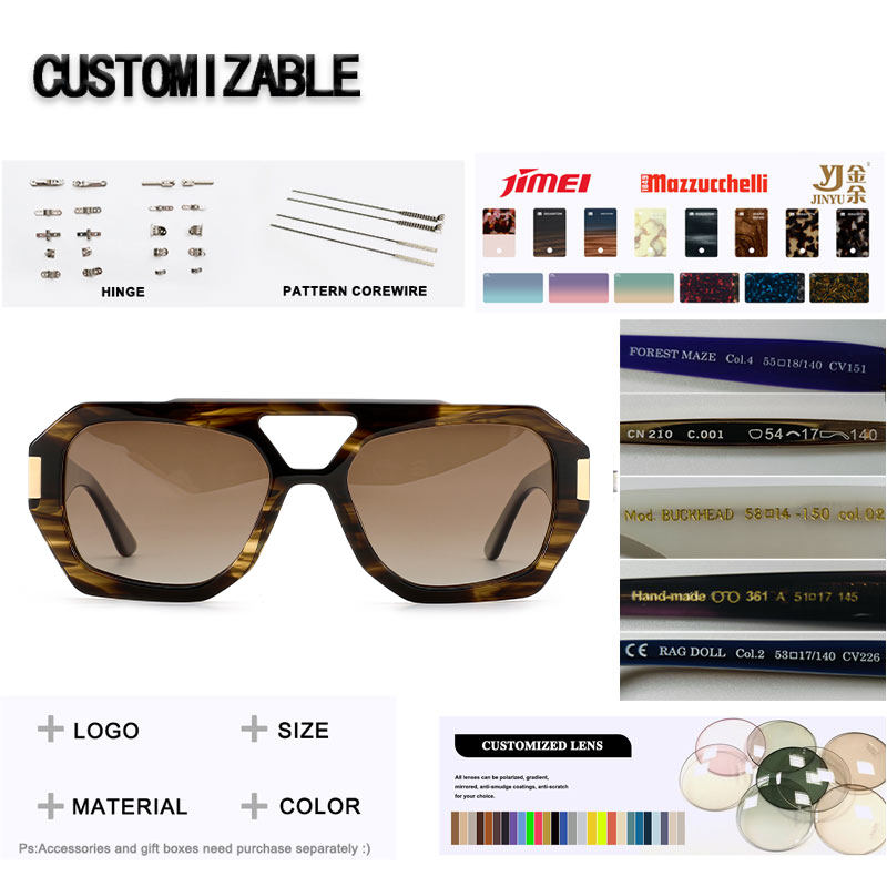 Senior Sense Double Bridge Sunglasses UV400 Mirror Polarized Lenses White Green Frames Fashionable Acetate Metal PC Material