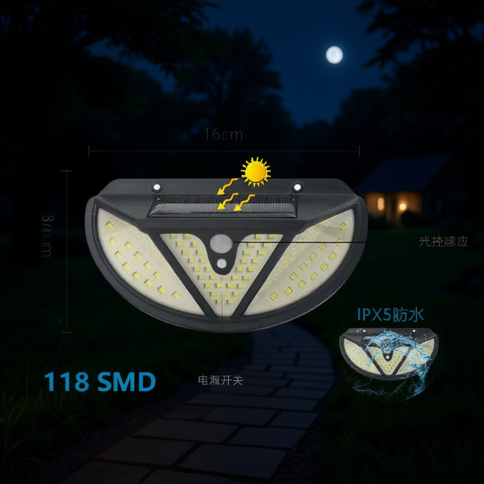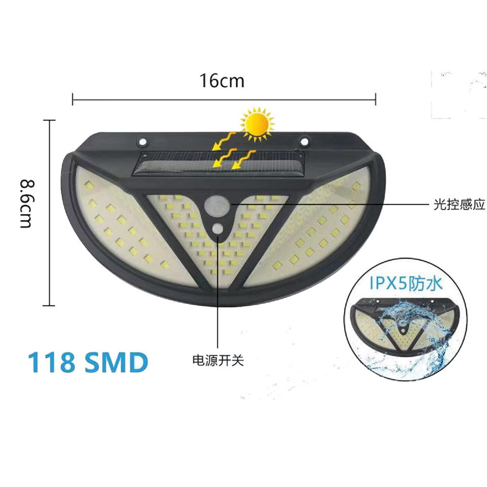 Young Electronicos Led Motion Sensor Light 118 Smd IpX5 Waterproof Outdoor Wall Lamp With Solar Panel Night Light