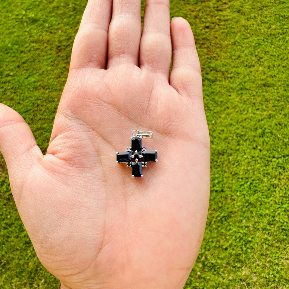 Pure 925 Sterling Silver Fine Jewelry 100% Natural Sapphire & American Black Diamond Cross Pendant For Girlfriend Gift Low Moq