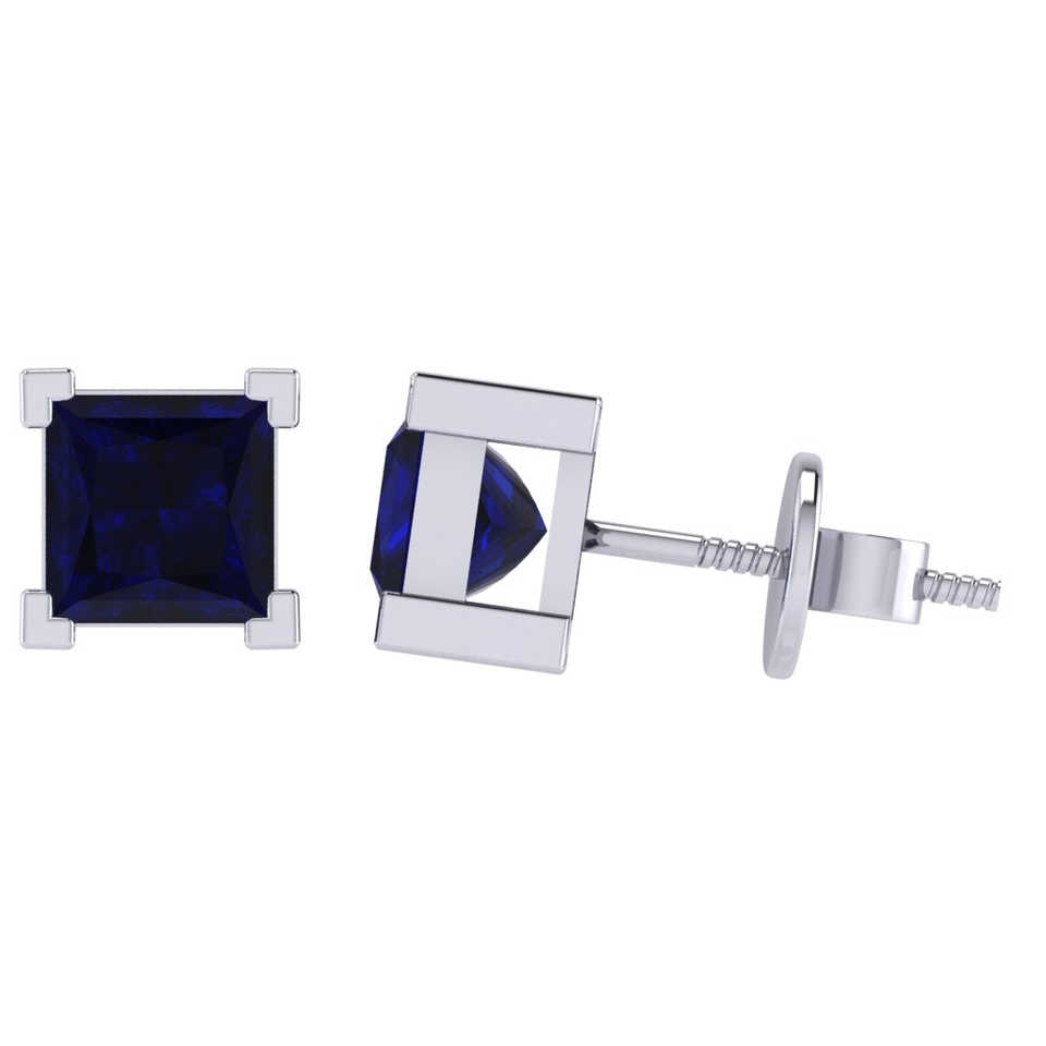 September Birthstone Fine Stud Earrings Gold-Plated Sterling Silver Princess Cut Sapphire Gemstone Elegant Stud Earrings