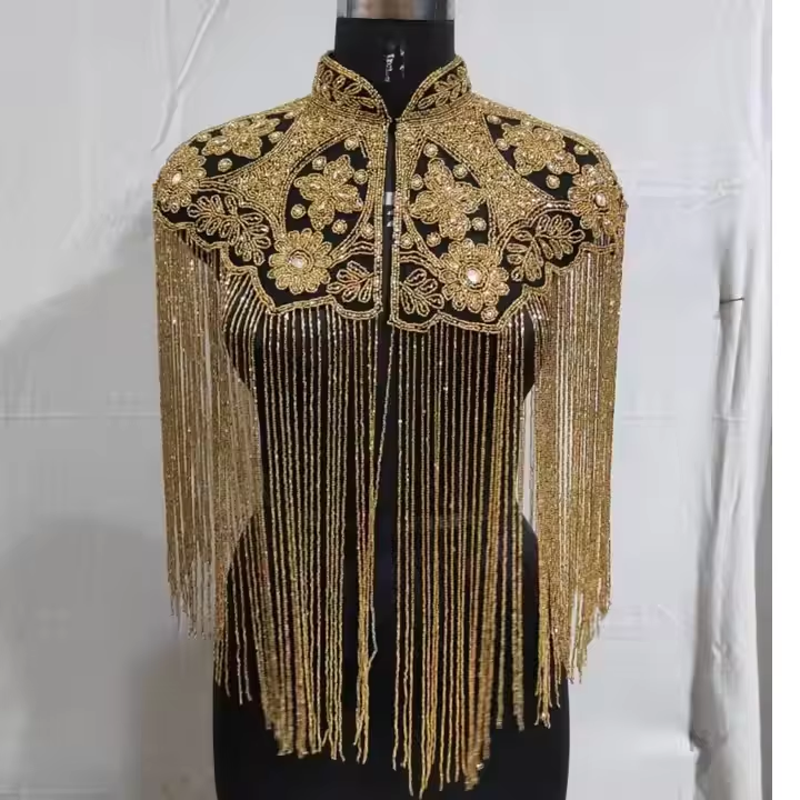Sequin Design for Club Wear Handmade Adult Party Wrap with Long Fringes and Fancy Beaded Club and Party Wear Polyester