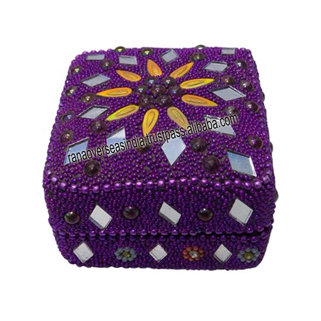Sequins Mirror and Stone Pattern Square Kumkum Vermillion Box With Lid Made of Iron for Women