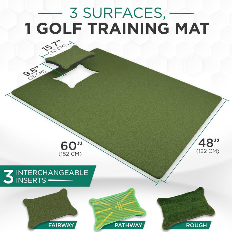 Ser Golf 3 In 1 Golf Practice Mat Indoor Outdoor Swing Training Mat With Chipping Area For Golfers Professional Use