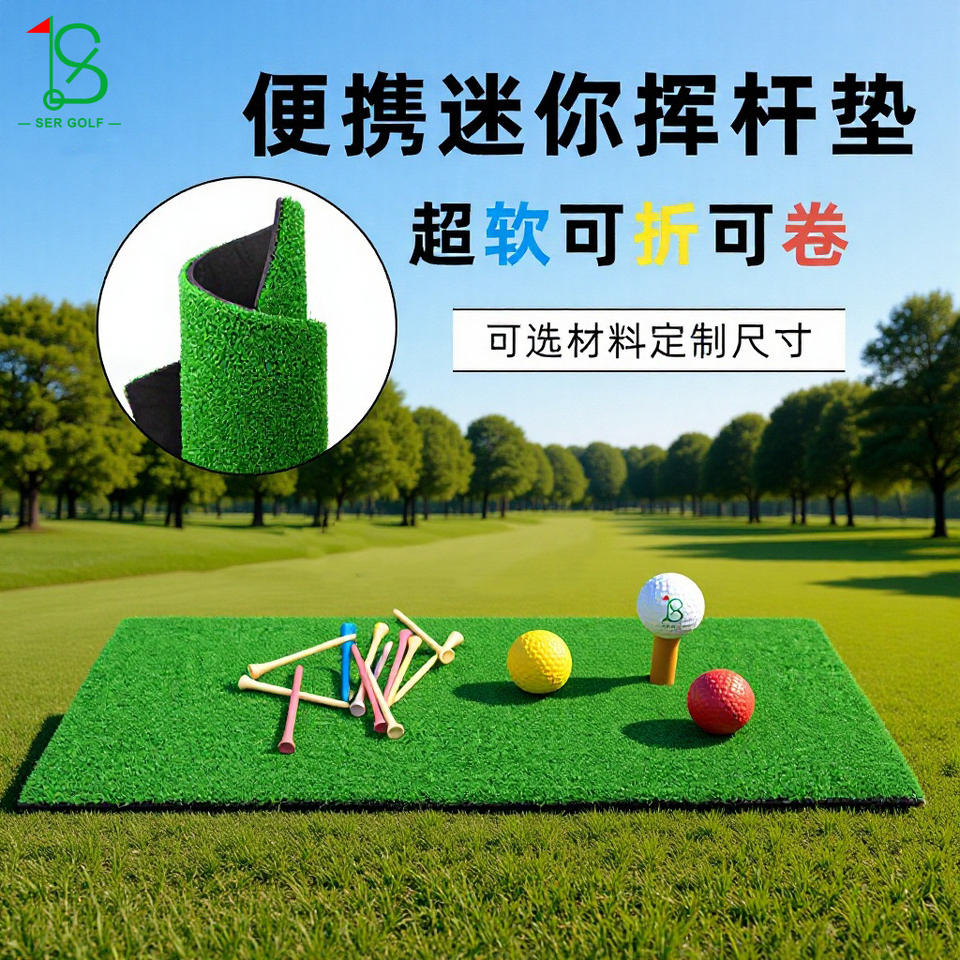 Ser Golf Mini Golf Swing Mat 30x60cm Portable Practice Training Pad With Grass Material For Indoor Outdoor Use