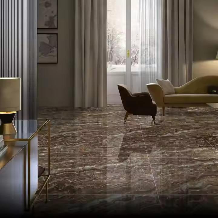 Serabia Brown Guangdong 600x1200 Porcelain Polished Glazed Marble Look Slab Tile Glossy Premium