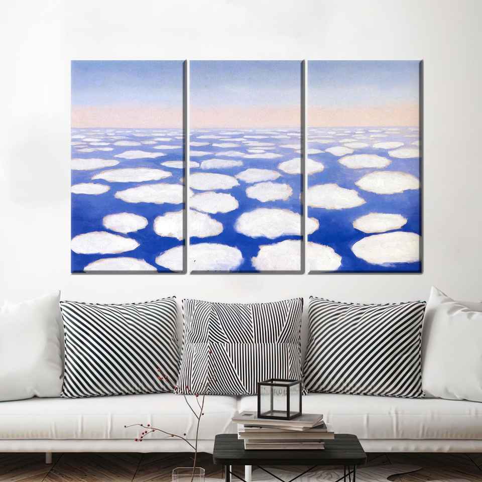 Serene Abstract Cloud Sea Canvas Print - Calming Decor Art,3P:Gallery Wrapped