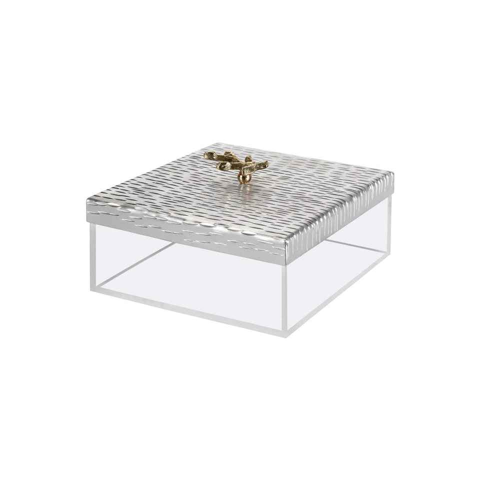 Serenity Pearl Acrylic Decorative Box with Artistic Wooden Lid Designed for Stylish Ramadan, Eid, and Festive Presentations