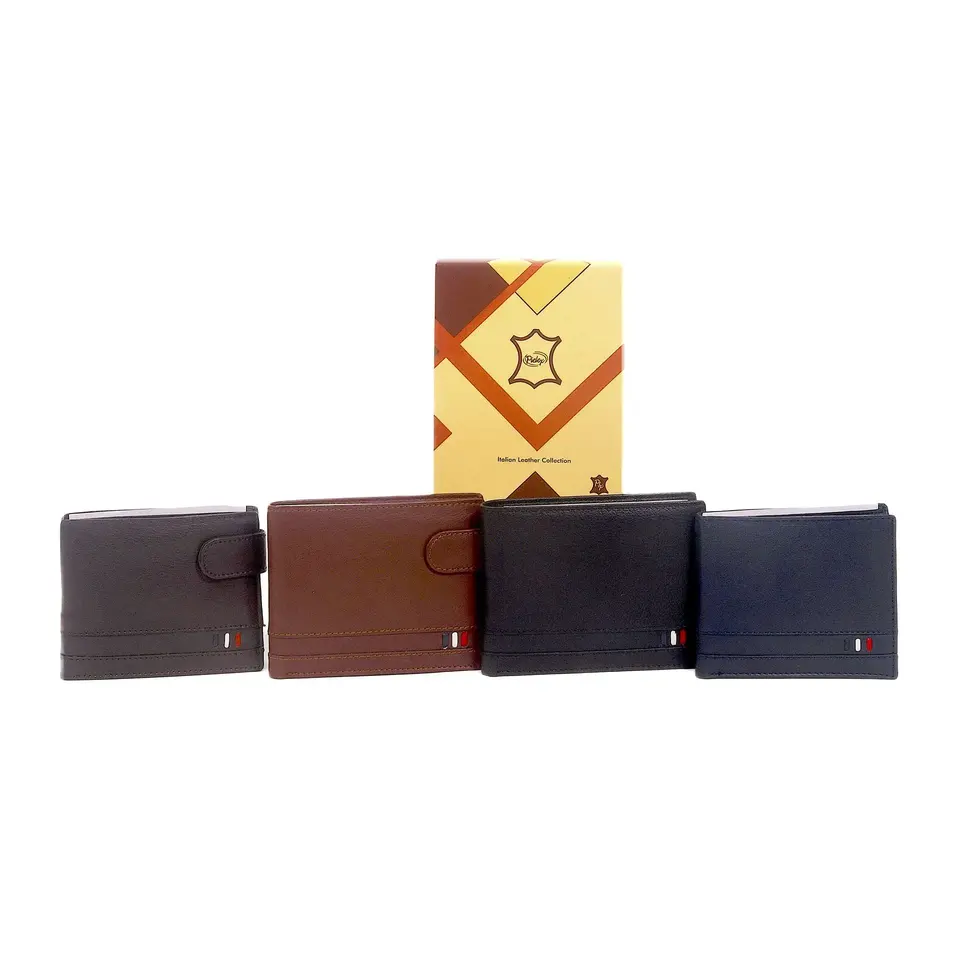 Men's Business Style Glendale Leather Wallet RFID Protected Fold Open Closure Short Slim Printed Design Polyester Lining