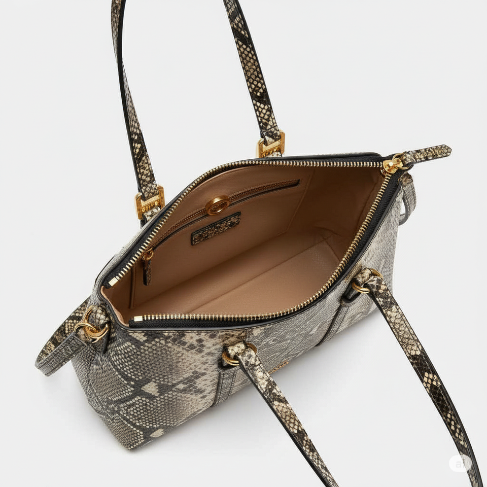 Serpent's Embrace Womens Tote Handbag Fashionable Faux Snakeskin Leather Durable Eco-Friendly Large Capacity Lightweight Zipper