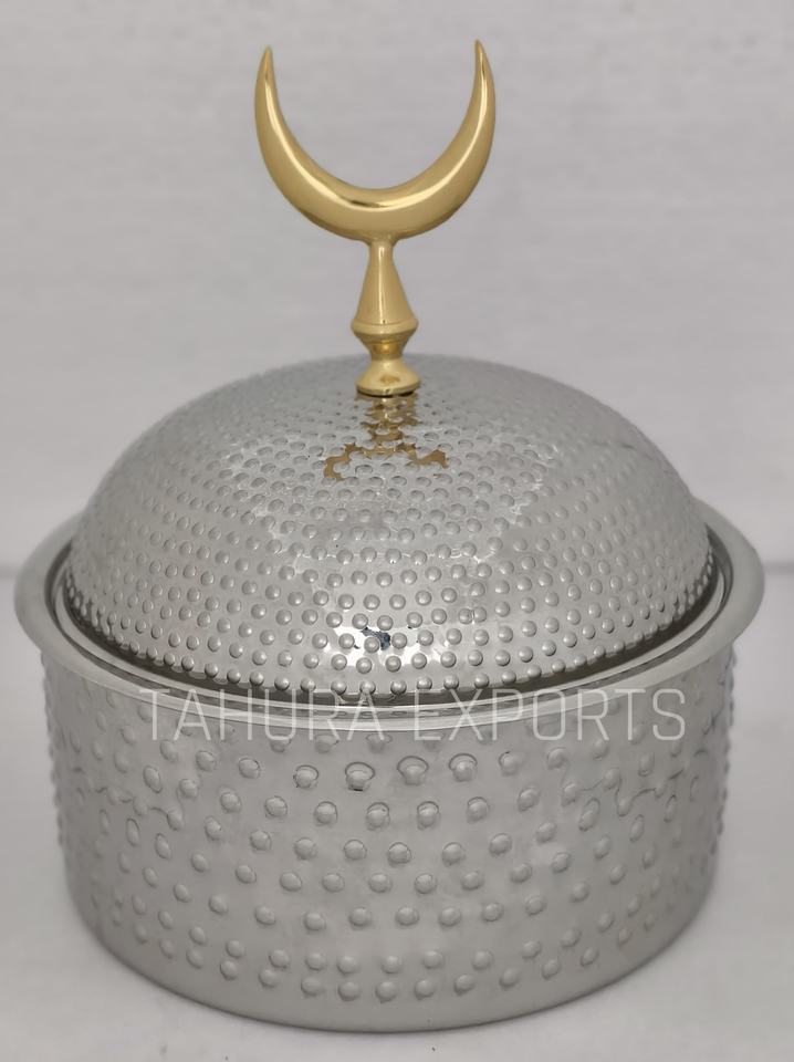 Serving Hotpot Stainless Steel Cover Hammered Design Shiny Polished Double Wall Pot Round Shape Dining Table Serve Pot Hot Sale