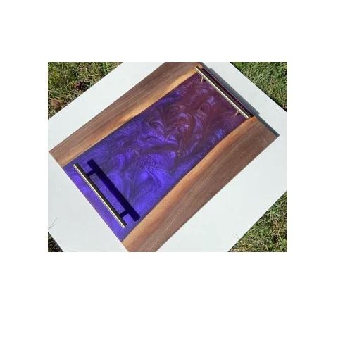 Serving Tray With Metal Handle High Quality Mango Wooden & Resin Tray Restaurant & Hotel Supplies at Reasonable Price