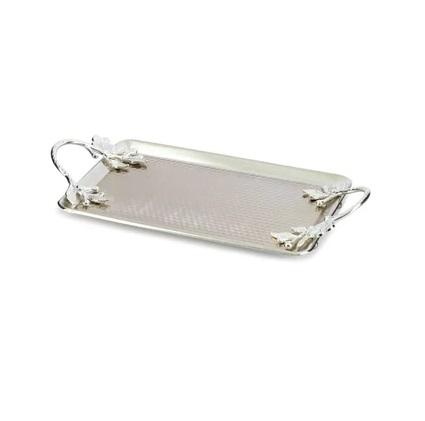 Nickel Plated Large Tray for Food in Wholesale Serving Tray with Leaf Design Silver Finished Handle Mirror Design