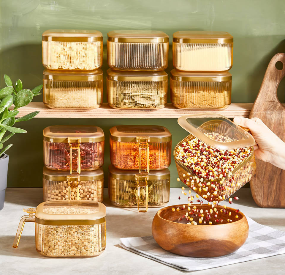 Set 12 Rectangle Eco-Friendly Sustainable Food Storage Bins Refrigerator Organizer Stackable Plastic Handles Pantry Storage Rack