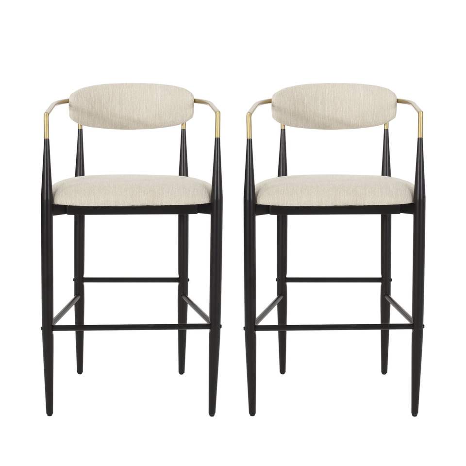 Set 2 Counter Height Barstools Iron Legs Beige Fabric Upholstered Bar Stools Backrest 260LBS Weight Capacity for Kitchen Bar