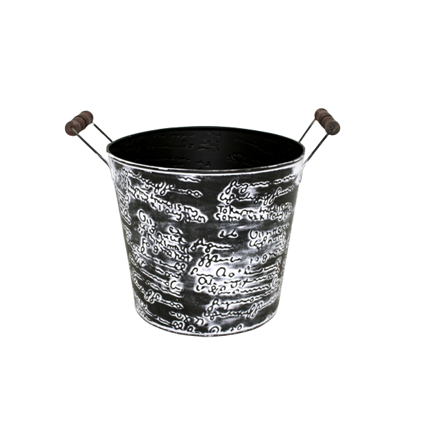 Set 2 Iron Planter Pot F598 Black White Antique Standard Size Floor Planter for Home Garden Outdoor Decoration Powder Coated