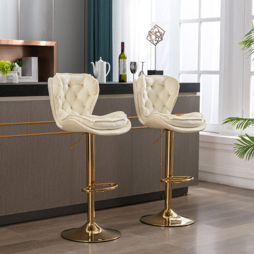 Set 2 Modern Lightweight Bar Stools Chrome Footrest Base Swivel Height Adjustable Mechanical Lifting Velvet Dining/Living Room