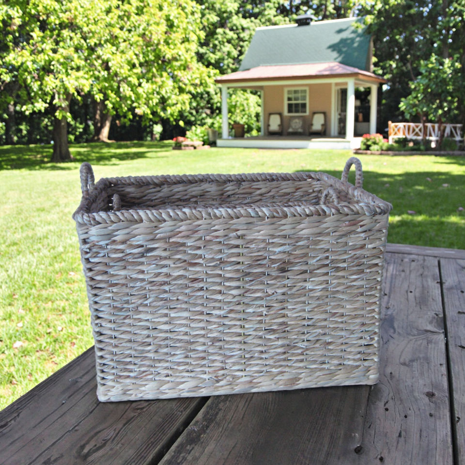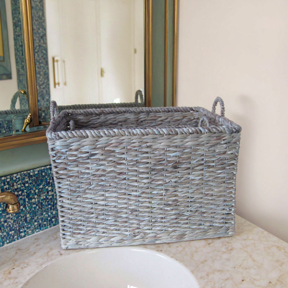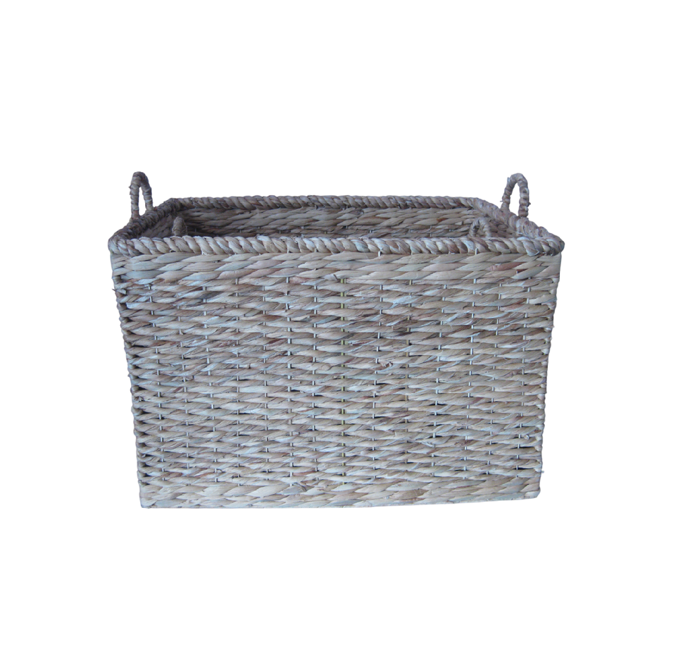 Set of 2 Handmade Rectangular Woven Baskets Customizable Straw Storage Bin with Water Hyacinth Vietnam Wholesale