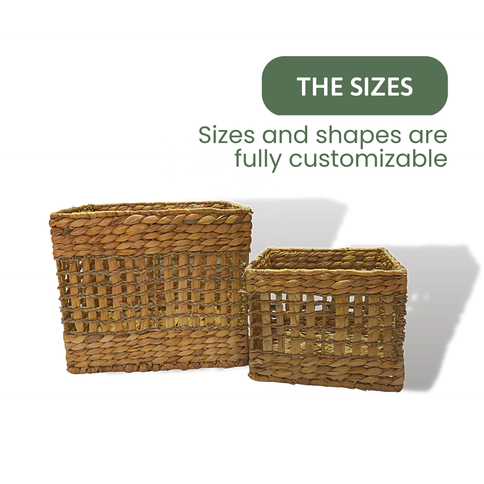 Set of 3 Hyacinth Water Woven Cube Baskets Tote Organizer Shelf for Efficient Storage Cubic Storage Basket Eco-Friendly Material