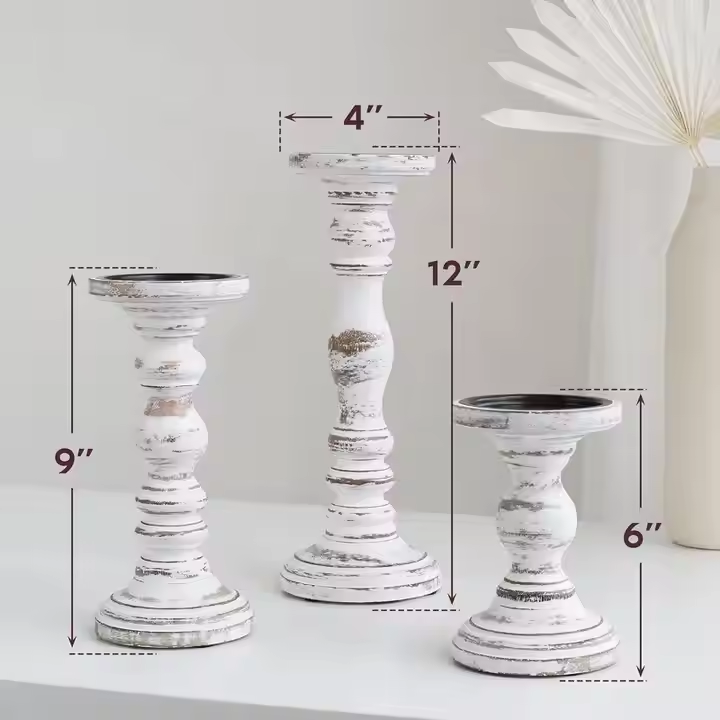 Set 3 Customized Color Solid Wood Rectangular Pillar Candle Holders Modern Furniture Eco-Friendly Large Candlesticks for Diwali