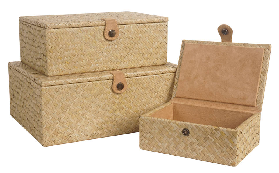 Set of 3 PIPER Pandanus Box with Suede Handle