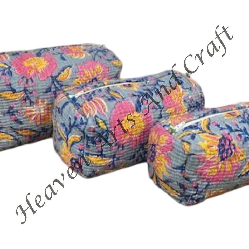 Set 3 Fashionable Lady Hand Block Print Toiletry Bag Quilted Bag Zip Makeup Pouch Cosmetic Travel Cosmetic Bags And Cases CB031