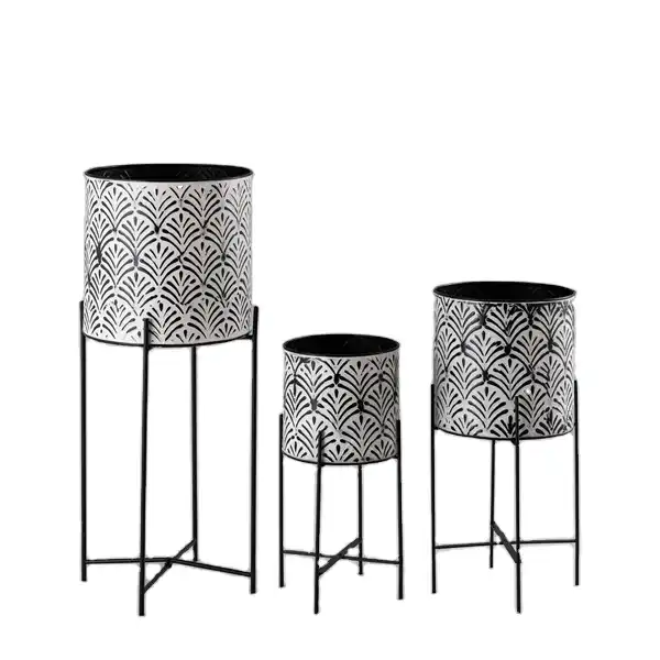 Set 3 Flower Pot Planter With Stand Round Shape Nickel Plated Plant Pot Planter for Home Decor Manufacturer Indoor & Outdoor Use