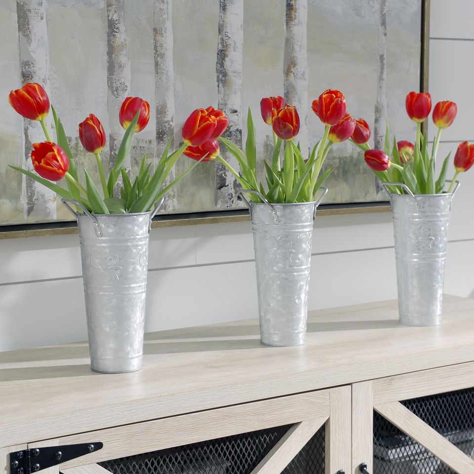 Set 3 Galvanized Metal Farmhouse Flower Vases 9 Inch Rustic Decorative French Bucket Pots for Home Garden Wedding Flower