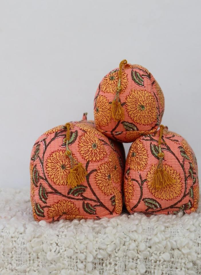 Set 3 Indian Cotton Floral Print Quilted for Toiletry Bags Fashionable Wash Bag Shaving Kit Vanity Case Zipper Closure Travel