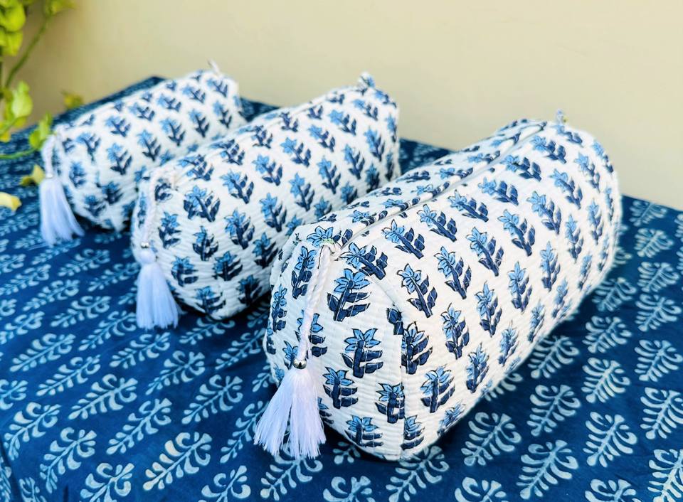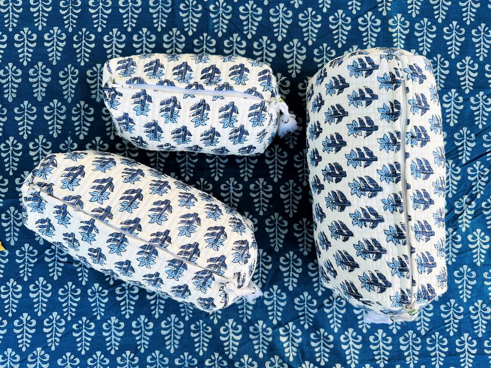 Set 3 Large Quilted Block Printed Handmade Eco-Friendly Vintage Style Durable Zipper Cosmetic for Bag Gift Travel Accessory