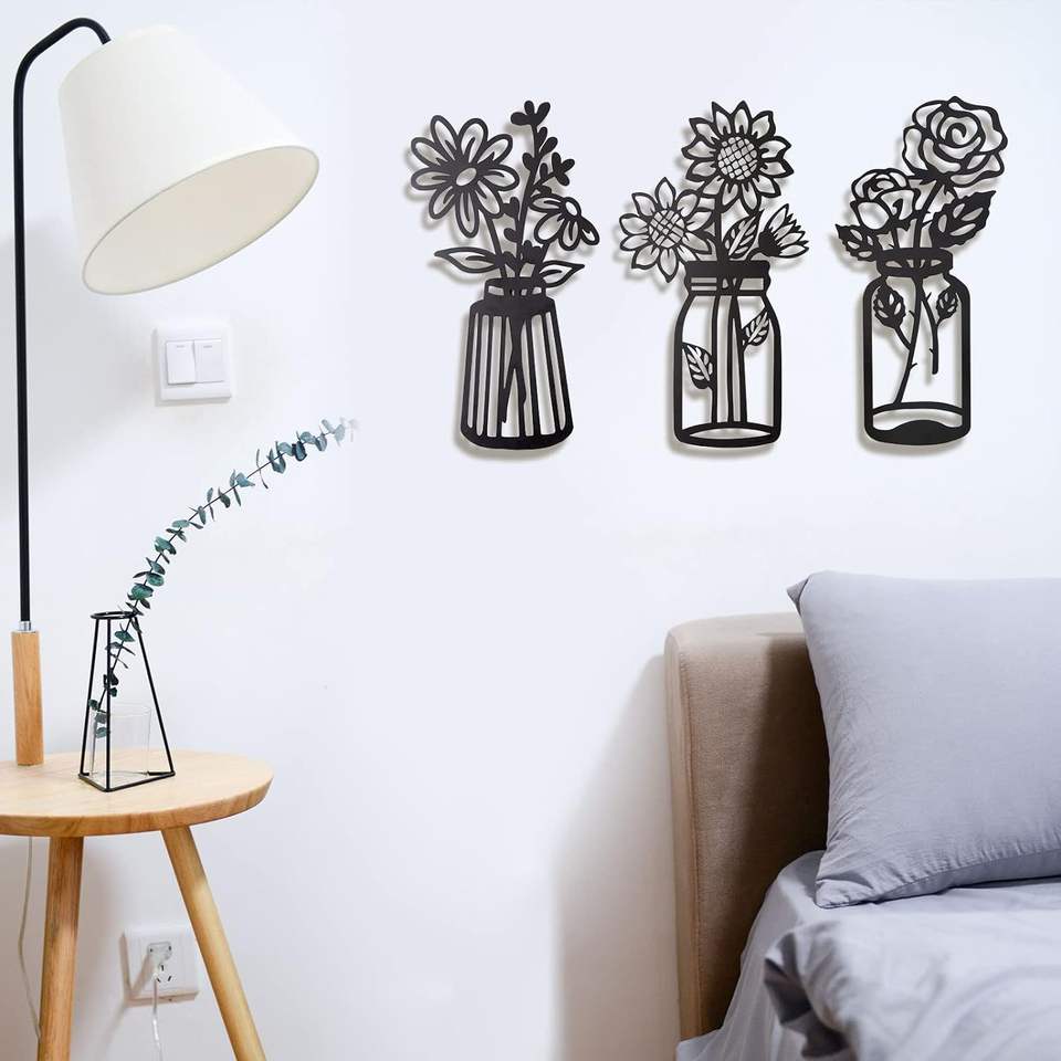 Set 3 Modern Minimalist Black Iron Flower Wall Art Custom Metal Flower Hanging Decoration for Birthday Anniversary Art Deco