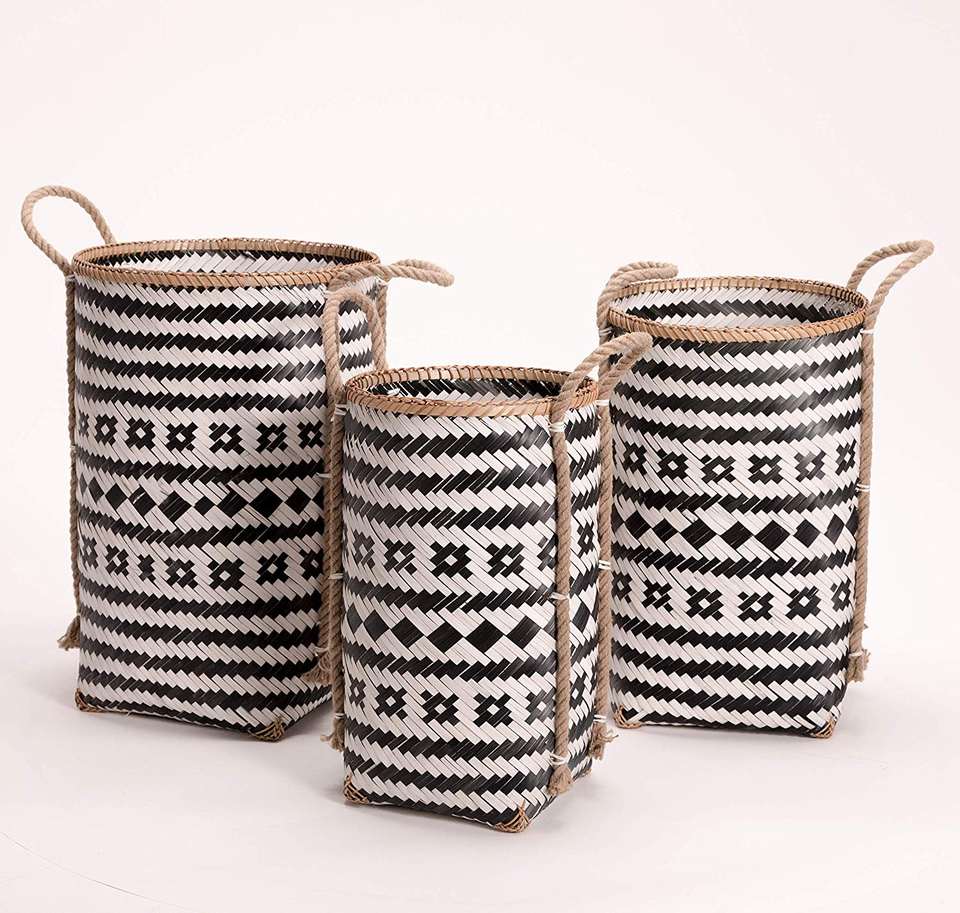 Set 3 Real Natural Bamboo Home Storage Baskets Good Selling Woven Laundry Hamper Daily Style Vietnam Wholesale King Craft Viet