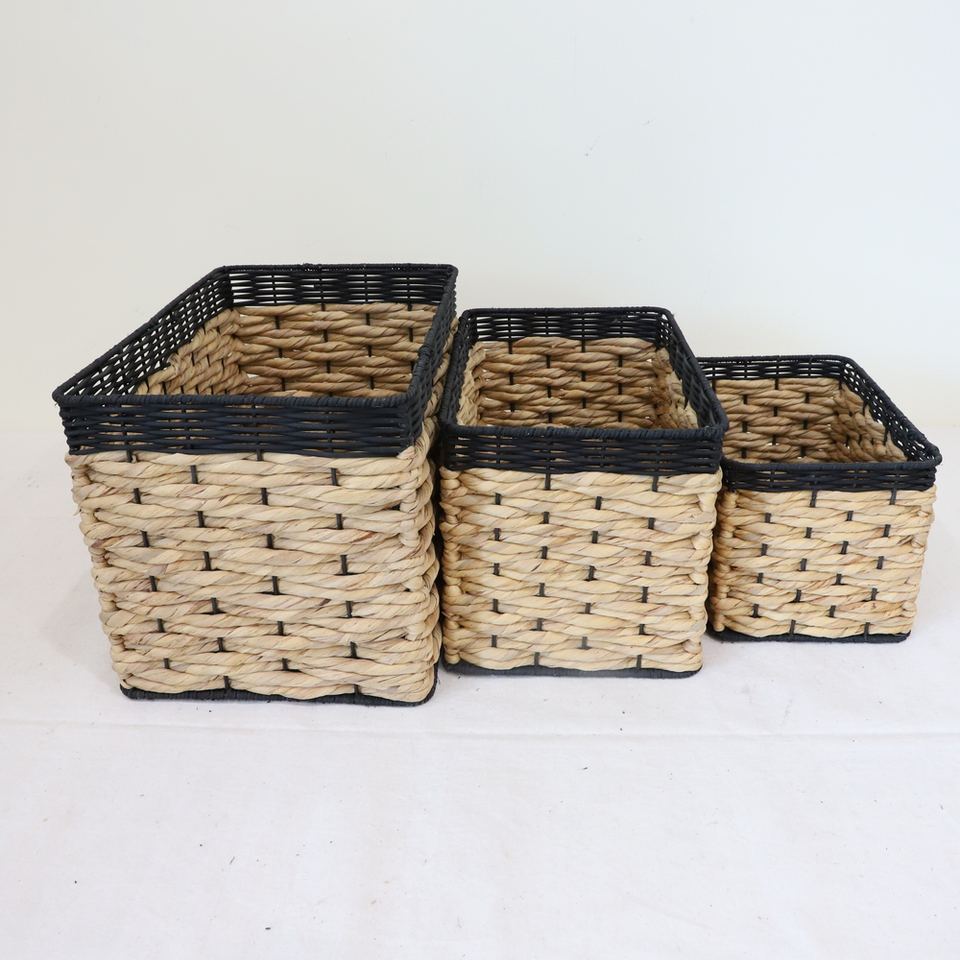 Set 3 Rectangular Water Hyacinth Baskets With Handles Hand-woven Basket Organizer Natural Eco Friendly