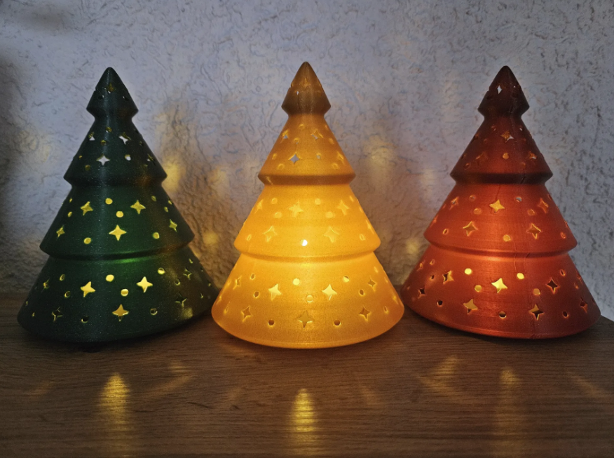 Set 3 White Metal LED Christmas Trees Star Cutout Festive Holiday Tealight Candle Holders for Outdoor Home Decor Table