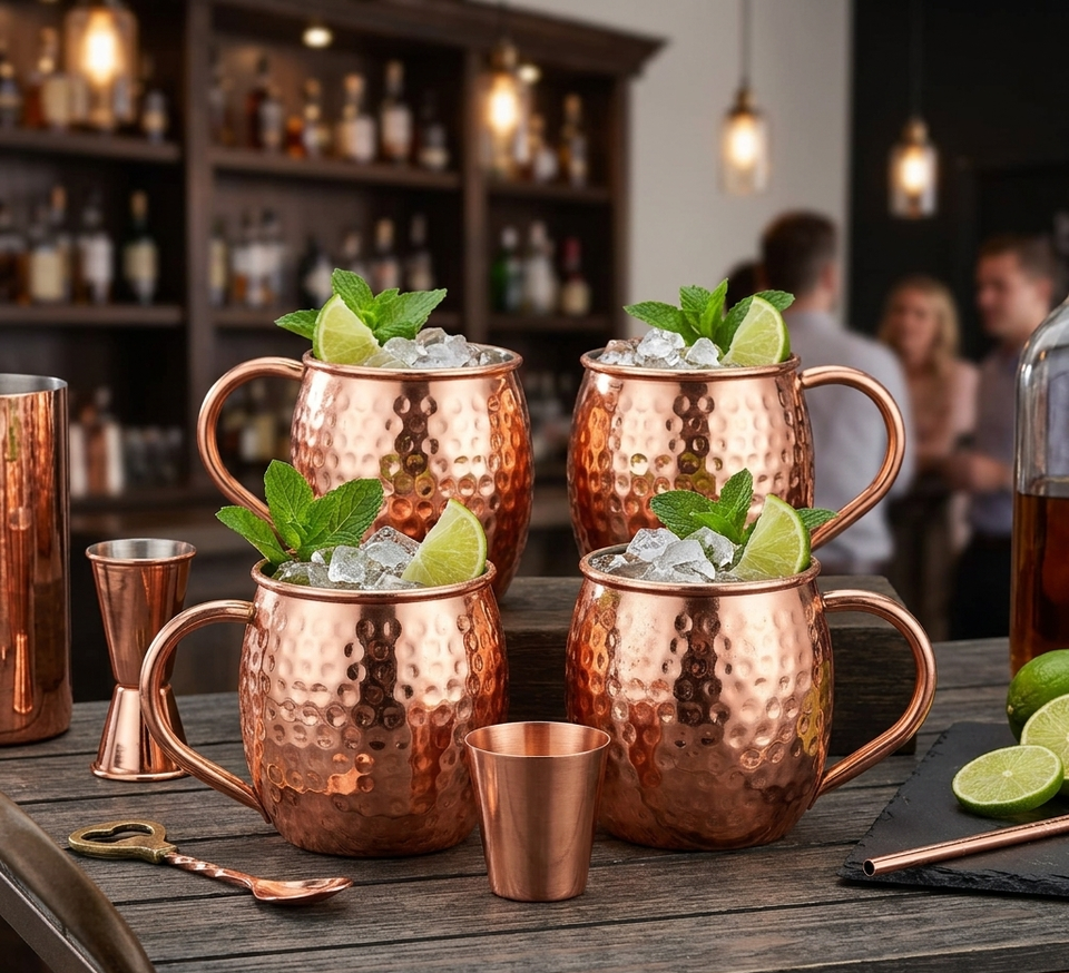 Set 4 Handmade Copper Mule Mug Hammered Texture Multi-Use Handle Drinkware for Lid Eco-Friendly Food-grade Safe Coffee