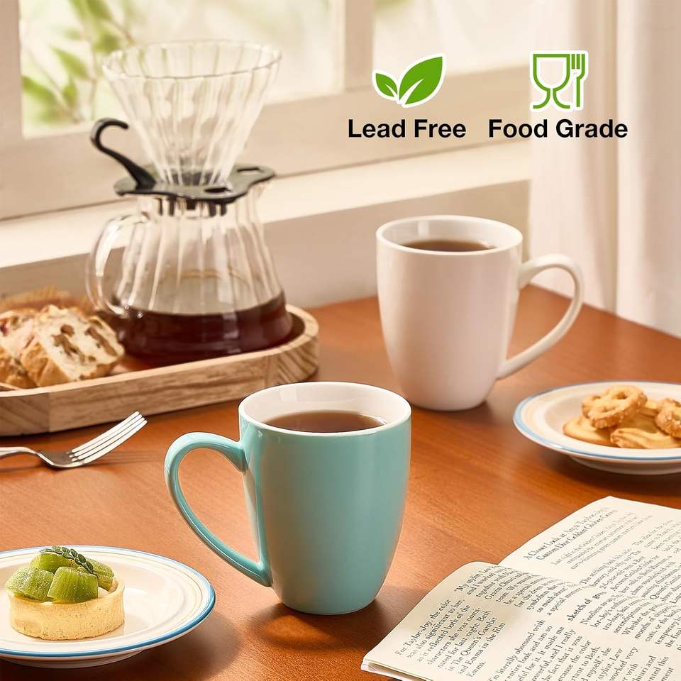 Set 6 Portable Office Cups 13 Ounce Ceramic Tea Mugs Handle BPA Free for Latte Hot Tea Cappuccino Mocha Porcelain Material