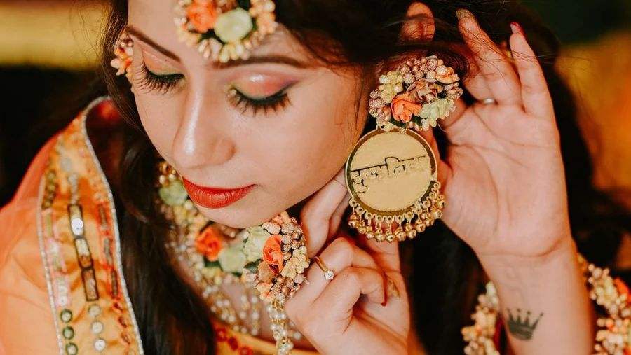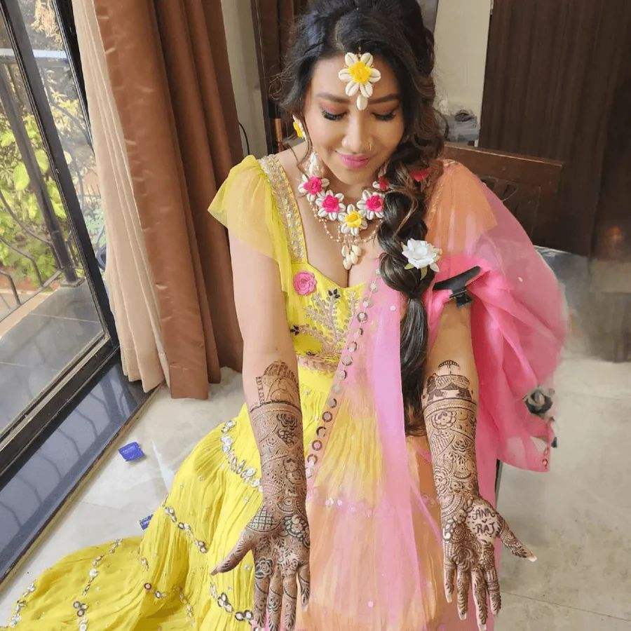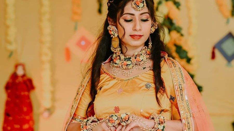 Set Floral Jewellery and Yellow Haldi Mehndi/Haldi/Bridal/Baby Women Shower Handmade Mehendi Jewellery Hathphool Earring Design