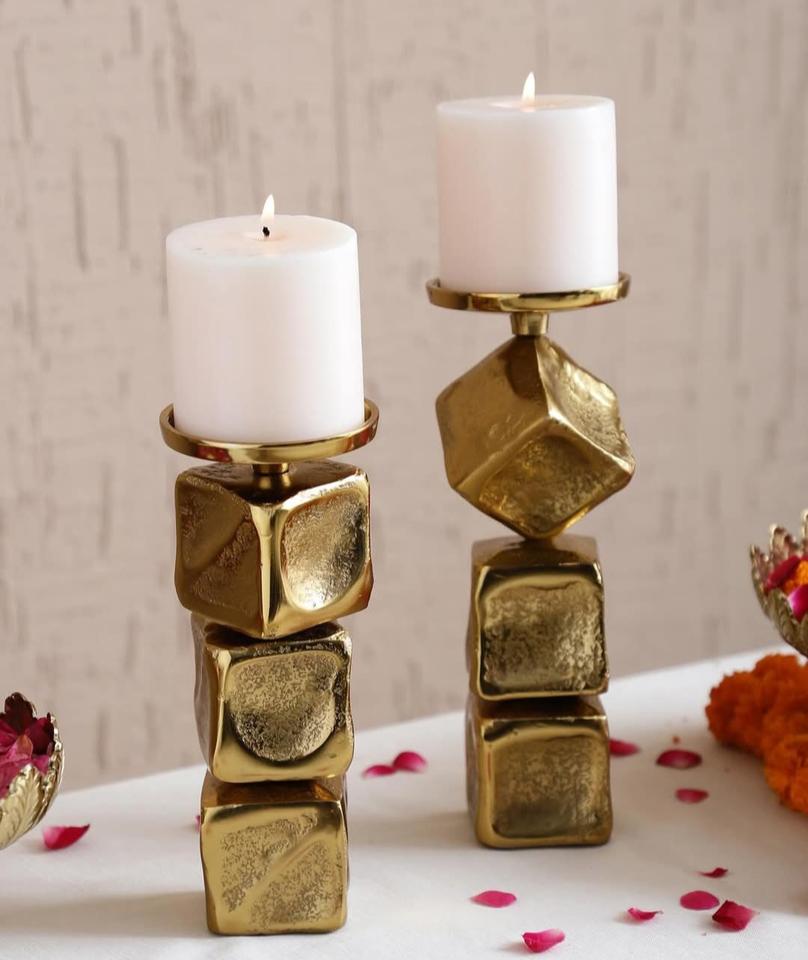 Set Of 2 Aluminum Gold Plated Candle Holder For Home Hotel Decorative In Customize Best Finish Candle Stand High Quality