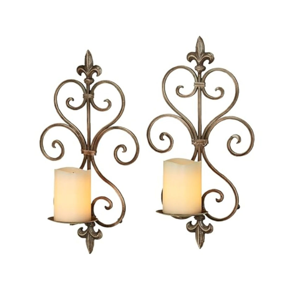 Set Of 2 Black Metal Wall Candle Sconces Holders Decorative Iron Pillar Candle Holders For Living Room Bedroom Dining Room
