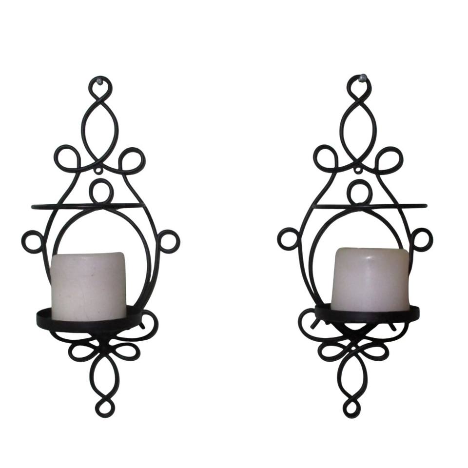 Set Of 2 Black Wrought Iron Wall Sconces Candle Holder Decorative Scroll Metal Wall Art For Home Living Room Bedroom Dining Room