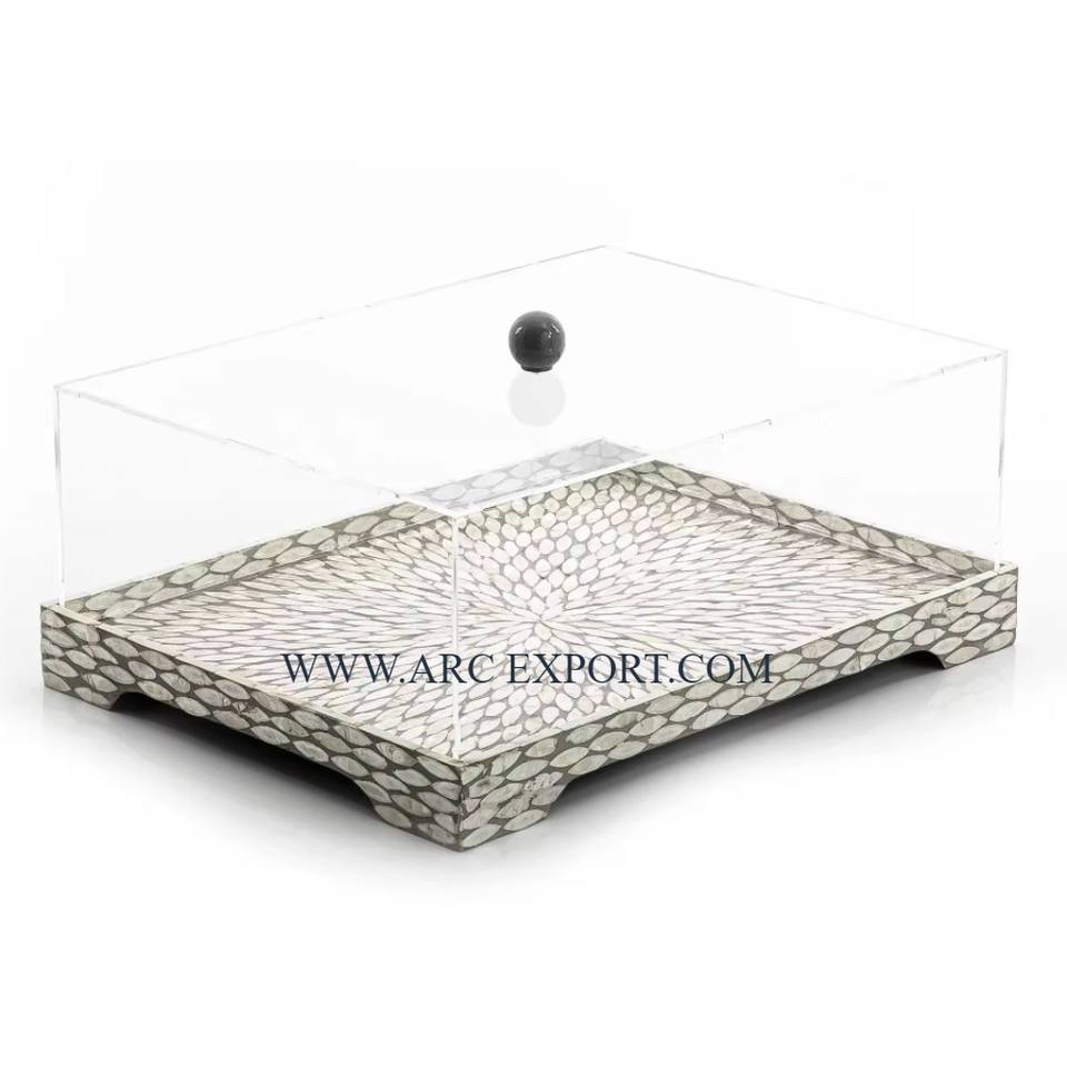 Set of 2 Bone Inlay Cake Server Stand and Platters Deluxe Quality Table Decoration Cake Display Stands With Lids in Lowest Price