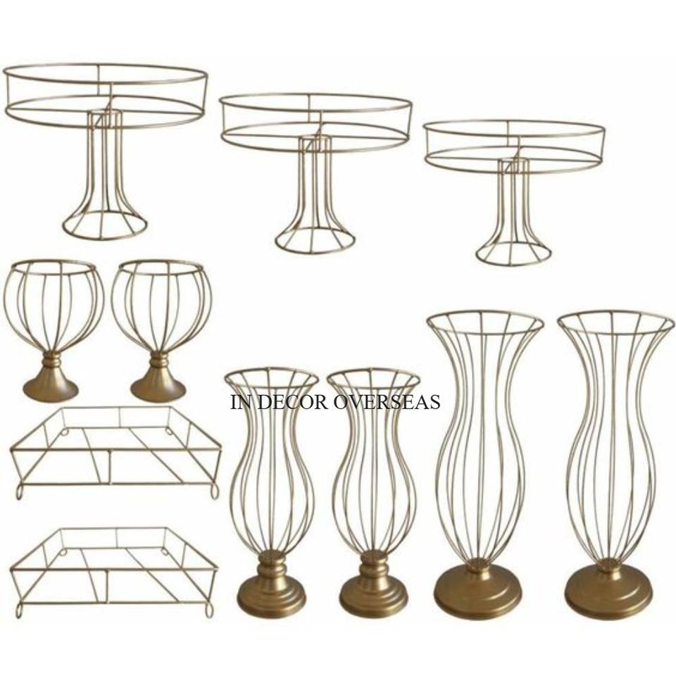 Set Of 2 Exclusive Quality Metal Wire Made Gold Plated Flowers Display Wedding Decoration Harlow Stand In Impressive Price