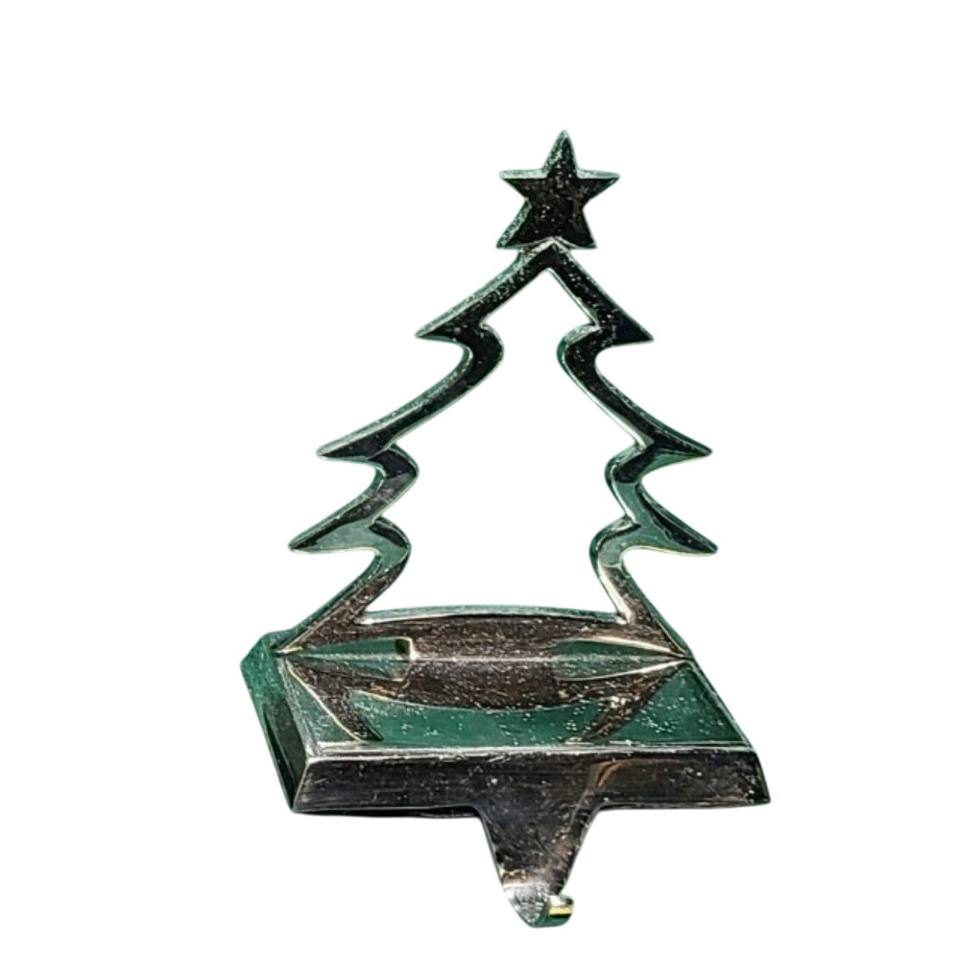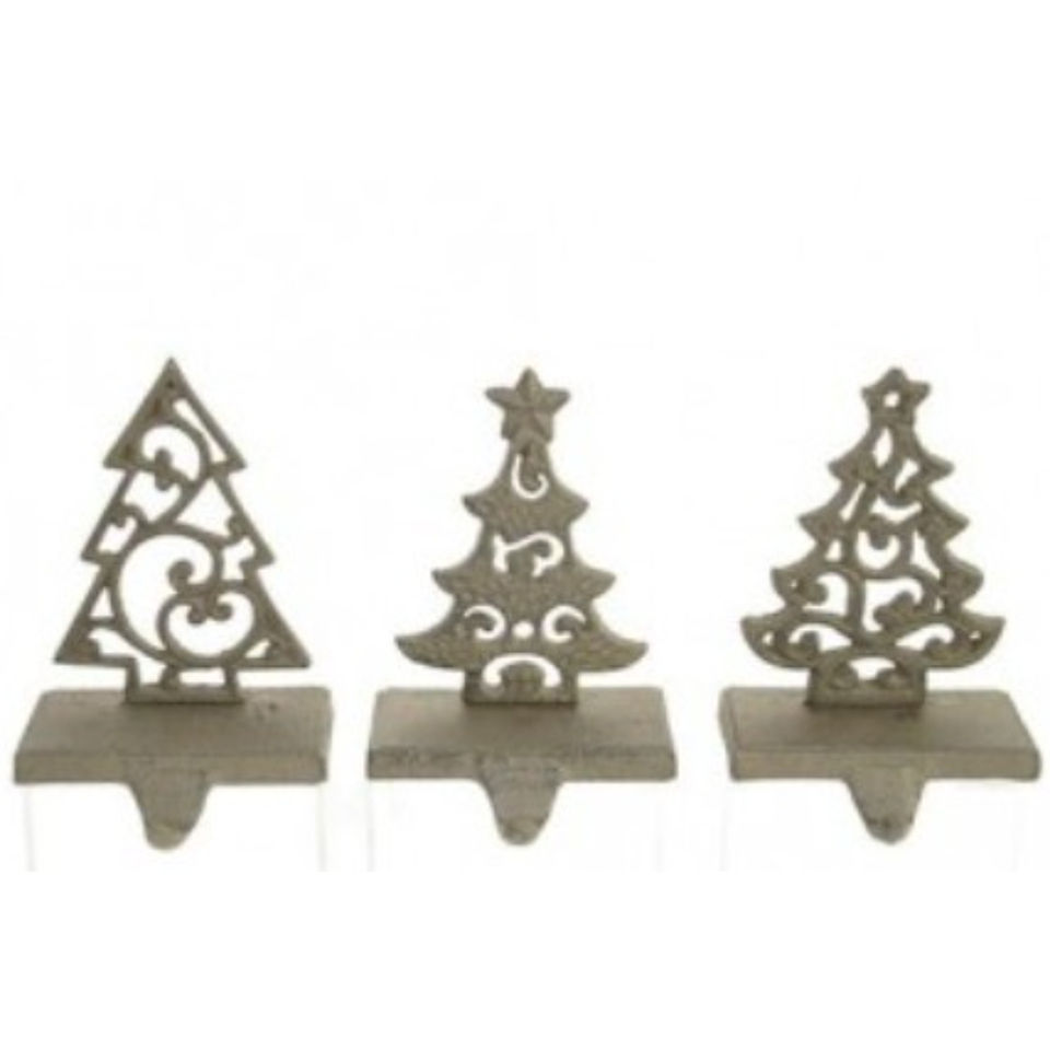 Set Of 2 Gold Metal Christmas Stocking Holders For Fireplace Mantel Reindeer And Christmas Tree Design Stocking Hangers Decor