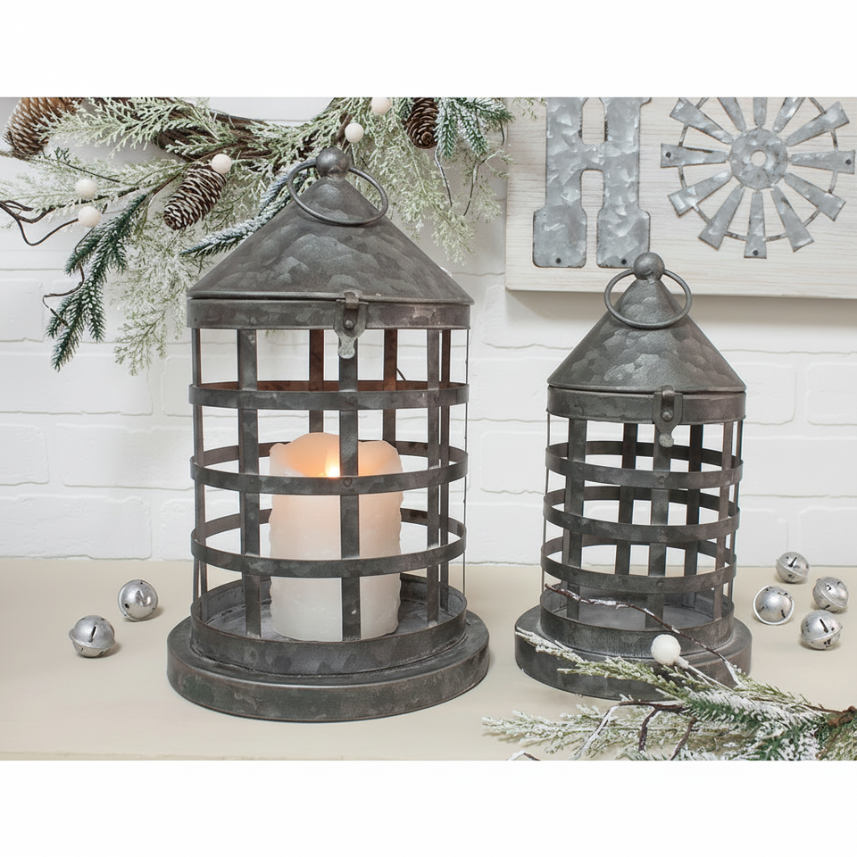 Set Of 2 Iron Galvanized Candle Lantern for Home Outdoor Garden Decorations Floor & Hanging Lanterns Handicrafts