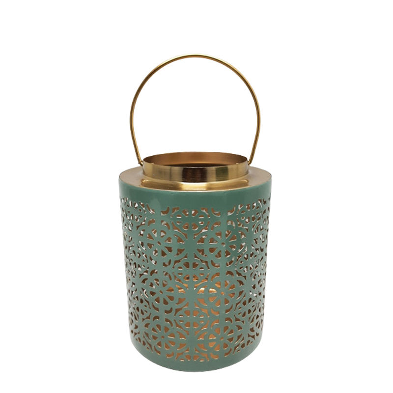 Set of 2 Iron Round Lantern With Handle Green & Gold Colour Small Size Lanterns for Christmas & Garden Decoration
